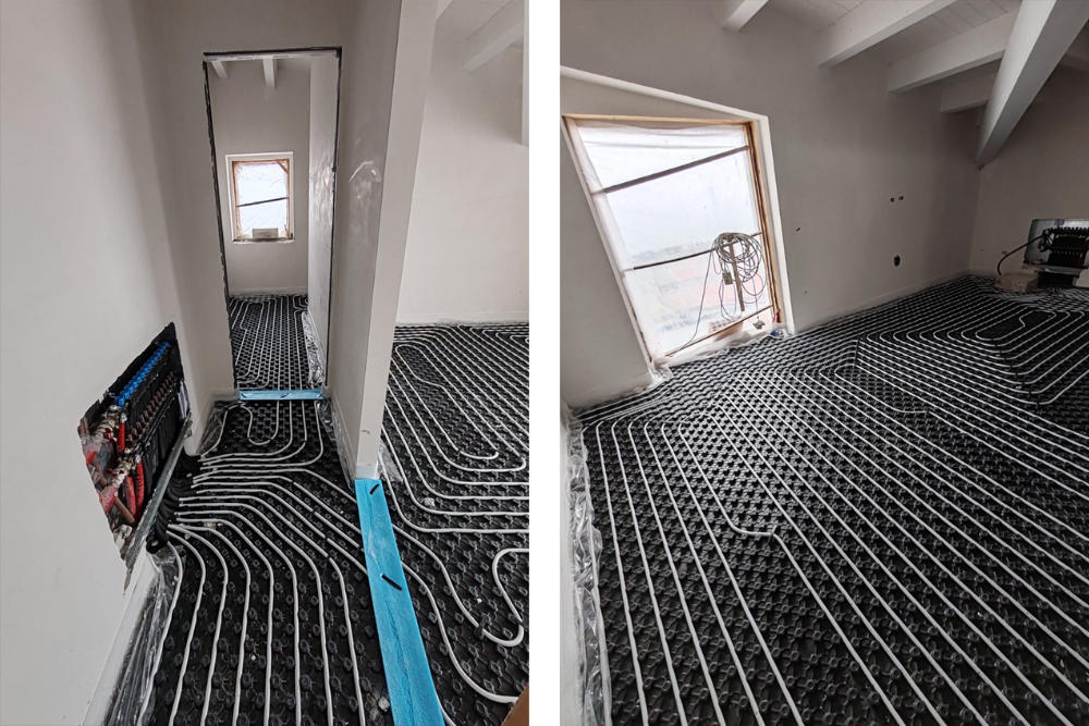 Abbiamo installato un impianto radiante a pavimento a bassa inerzia termica, progettato per offrire comfort abitativo in ogni stagione e ridurre sensibilmente i consumi energetici.